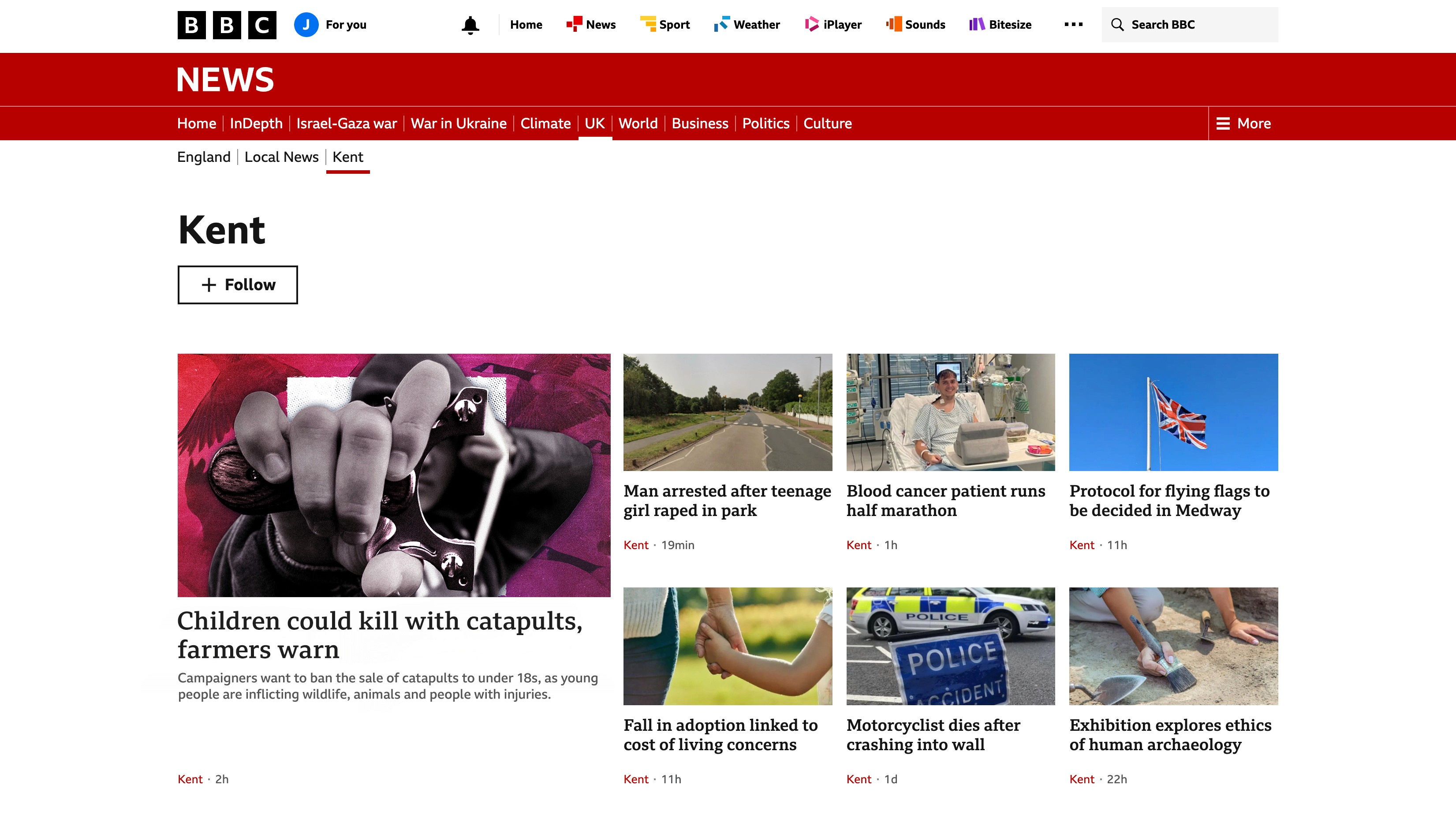 Here is the thumbnail being used on the BBC News Kent webpage. As you can see, the thumbnail’s vibrant and impactful design helps the article standout from the other articles on the webpage.