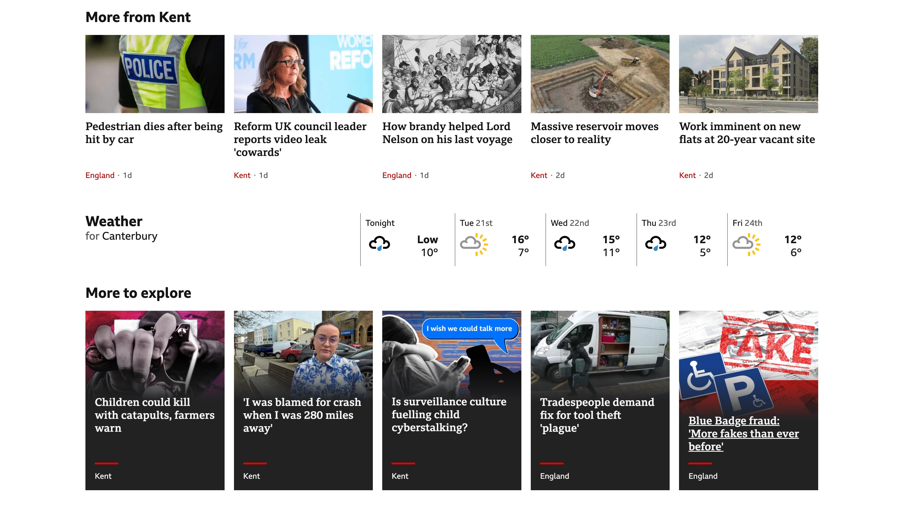 The thumbnail being used in the “More to Explore” rail on the BBC News Kent Homepage.