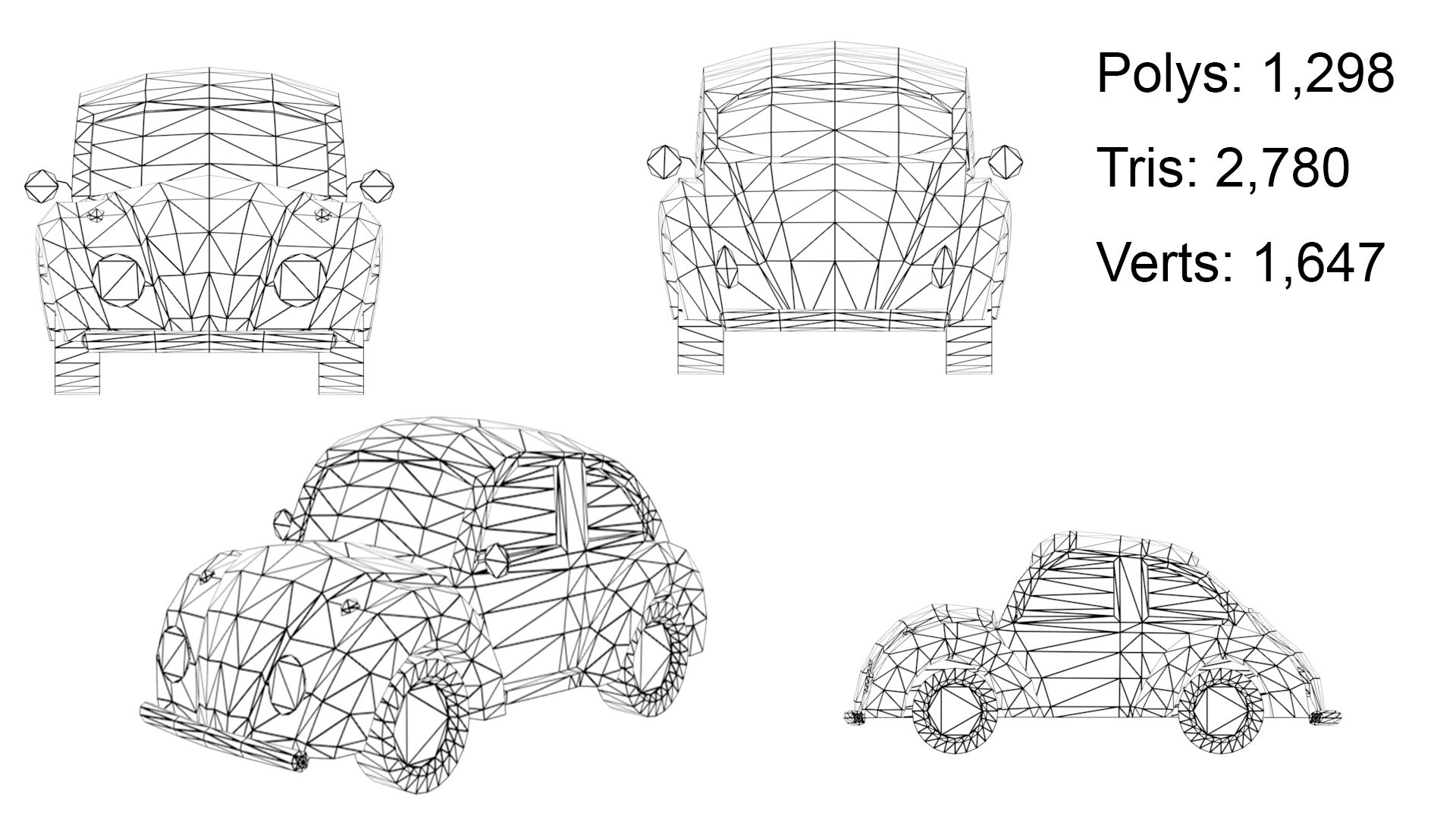 Topology of the Low-Poly Car before polys were reduced during the optimisation phase of development.